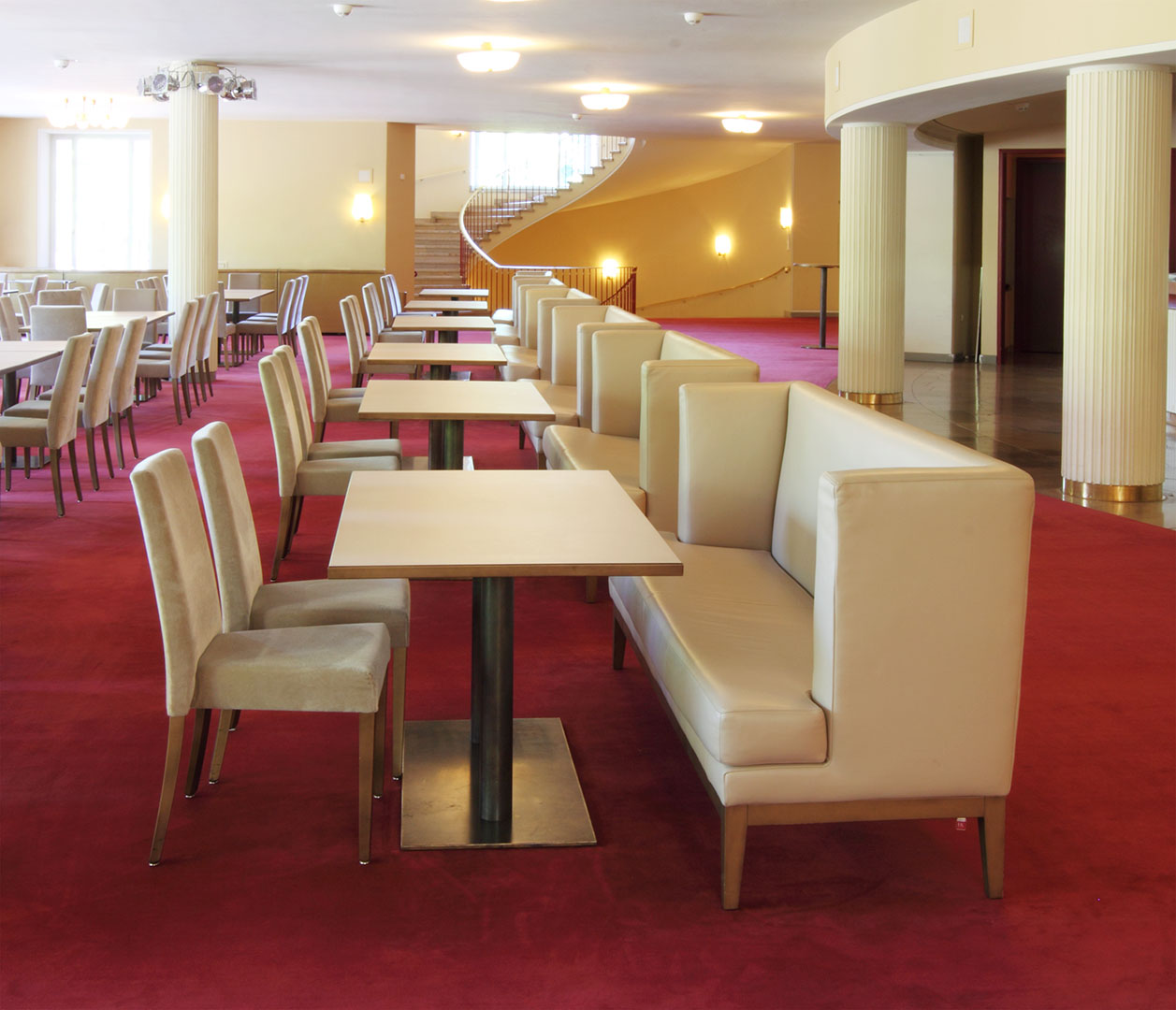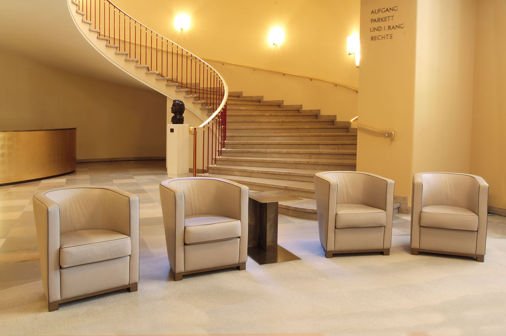 Gestaltung der Wände, Konzeption der textilen Gestaltung wie Vorhänge, Bodenbeläge und Möblierung in Kooperation mit RKW Architekten, Düsseldorf